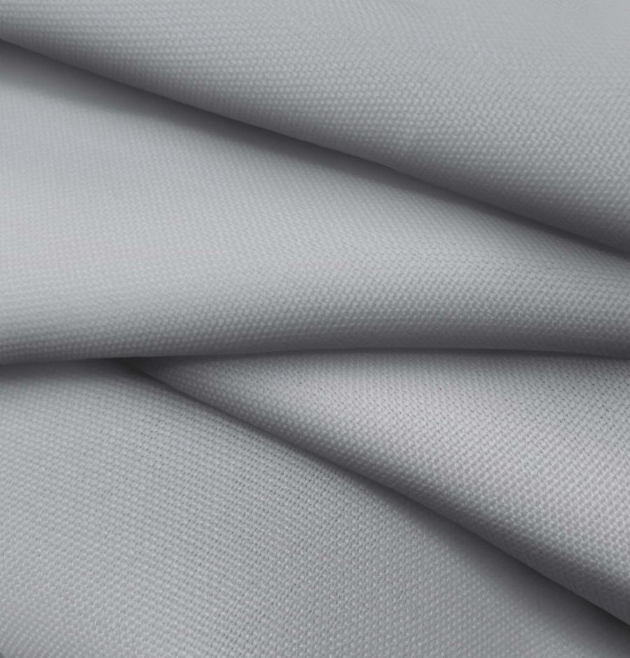 La tela base de la impresión es el Tejido Técnico Hidrófugo Antibacteriano Tromso. El color liso impreso es Gris Plata Romana, con un CMYK de 42 32 28 8. El color secundario es un tono gris oscuro con un toque de plata, que combina perfectamente con colores fríos como el azul marino, el lila y el verde oliva.