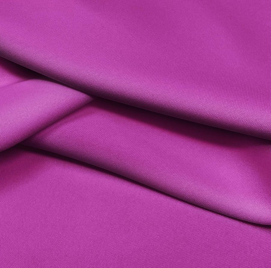 La tela base es el Tejido Hidrófugo Antibacteriano - Tromso, un tejido técnico de 100% poliéster con un gramaje de 160 gr/m2 y un ancho de 150 cm. Su color liso impreso es un Morado Púrpura con un valor CMYK de 46 95 1 0, lo que refleja una tonalidad profunda y oscura. Este color combina especialmente bien con tonos pastel, grises y blancos para lograr una apariencia elegante y sofisticada.