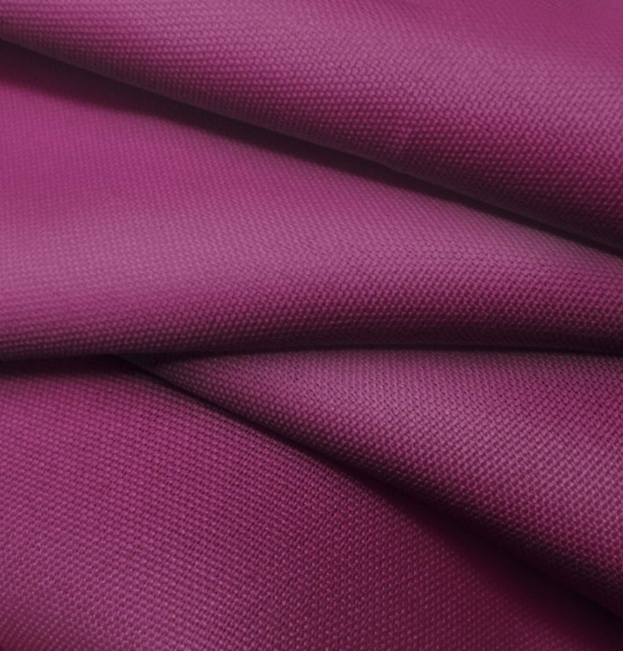 La tela base es el Tejido Hidrófugo Antibacteriano - Tromso, compuesta al 100% por poliéster y con un gramaje de 160 gr/m2. El color liso impreso en esta tela es un Morado Berenjena, que se consigue mediante una combinación CMYK de 49 100 31 47 de las tintas Cyan, Magenta, Yellow y Black. Este color secundario es vibrante, intenso y se asemeja al color de una berenjena madura. Combina especialmente bien con tonos cálidos como el naranja, el amarillo mostaza y el verde oliva.