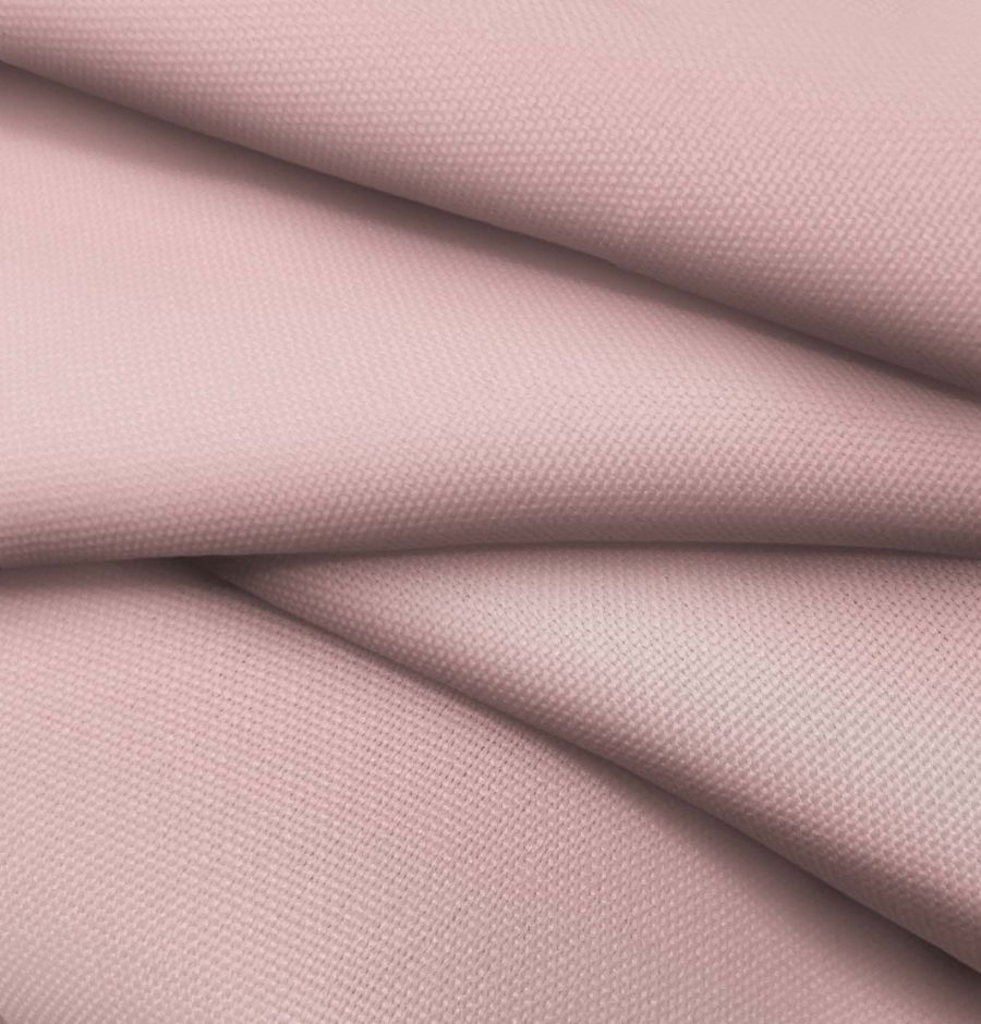 La tela base, tejido hidrófugo antibacteriano Tromso, está compuesta por 100% poliéster, con un gramaje de 160 gr/m2 y un ancho de 150 cm. El color liso impreso es en tonalidad rosa margarita, con una mezcla de tintas que se reflejan en el CMYK: 11 39 25 1. El color secundario que se puede observar es un rosa claro, que transmite una sensación delicada y suave, y combina perfectamente con otros colores pastel como verde menta, azul cielo y gris perla. Cabe destacar que la tela está impresa con el color liso a una sola cara por impresión digital textil.