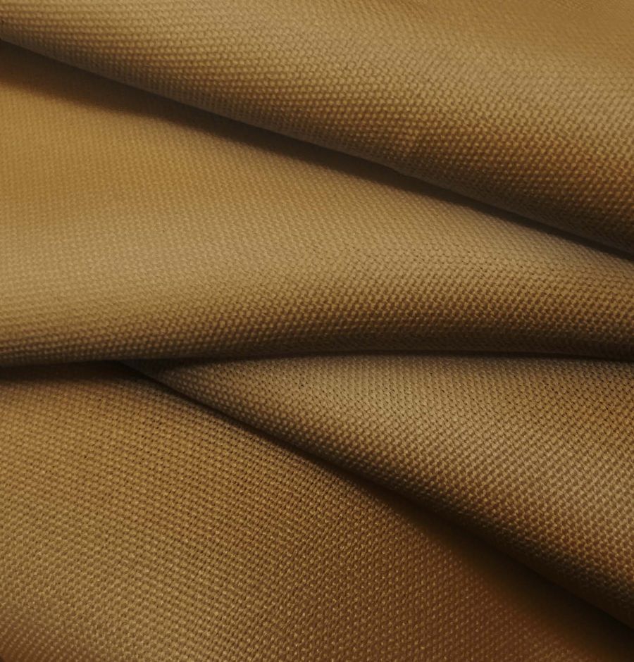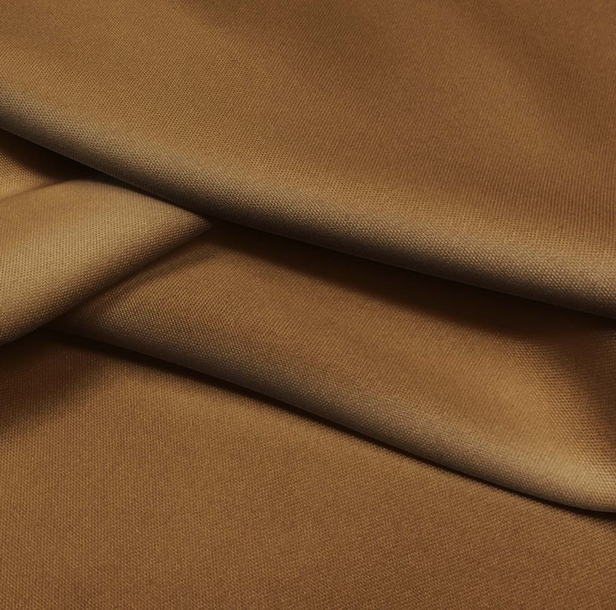 La tela base es el Tejido Hidrófugo Antibacteriano - Tromso, un tejido técnico de 100% poliéster con un gramaje de 160 gr/m2 y un ancho de 150 cm. El color liso impreso en esta tela es un marrón oscuro, con un CMYK de 39 62 95 52. El color secundario es un marrón cálido y profundo, que se combina especialmente bien con tonos terrosos e intensos como el verde oliva, el burdeos y el mostaza. Cabe destacar que esta tela está impresa con el color liso a una sola cara por impresión digital textil, por lo que no es un tejido tintado sino impreso por una sola cara.
