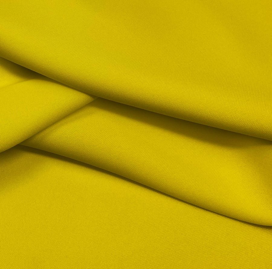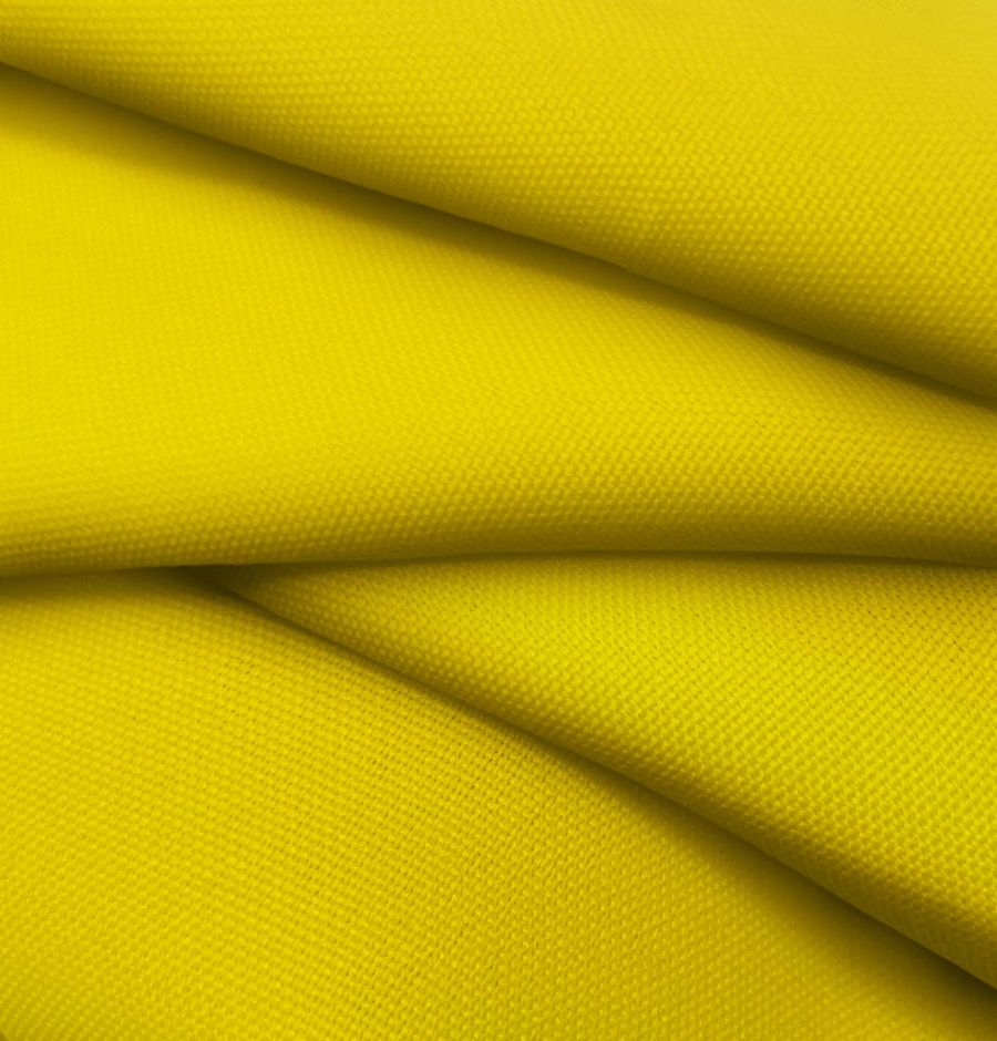 La tela base, Tejido Hidrófugo Antibacteriano - Tromso, está compuesta en un 100% por poliéster con un gramaje de 160 gr/m2 y un ancho de 150 cm. Este tejido técnico, que destaca por su acabado hidrofugo y propiedades antibacterianas, se presenta en un color liso con una tonalidad amarillo profundo, cuyo CMYK es 9 23 96 1. Este color evoca confort, seguridad y calidez, y se combina especialmente bien con el blanco, el gris, el negro y tonalidades más claras del amarillo.