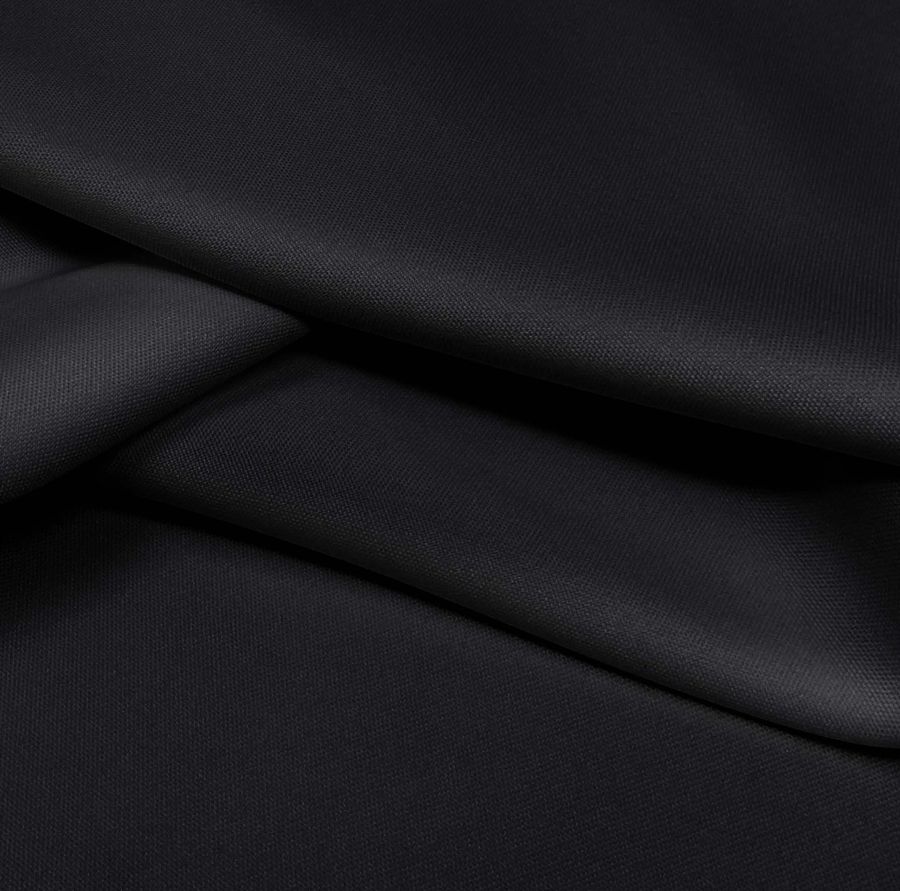La tela base, Tejido Hidrófugo Antibacteriano - Tromso, es un tejido técnico de 100% poliéster con un gramaje de 160 gr/m2 y un ancho de 150 cm. Su color liso impreso es Negro Noche, cuyo CMYK es 93 80 59 95, y está impreso a una sola cara por impresión digital textil. Este color es profundo y oscuro, lo que le proporciona un aire de sofisticación y elegancia. Simbólicamente se asocia con la noche y con la falta de luz, lo que puede hacer que los objetos cercanos parezcan más cercanos y los lejanos más distantes. Se combina bien con colores como el blanco, el rojo y el oro, lo que permite una gran variedad de combinaciones de colores en moda y decoración.