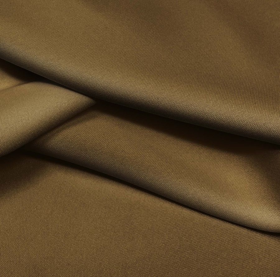 La tela base de este tejido es una poliéster de 160 gr/m2 con acabado hidrófugo y antibacteriano, de tacto ligeramente rugoso. El color liso impreso es un marrón chocolate con leche, cuyo contenido de CMYK es de 47 59 96 59. Este color es simbólicamente asociado a la calidez, la comodidad y la seguridad. Es un color que encaja perfectamente con tonalidades tierra, beige y naranjas suaves.