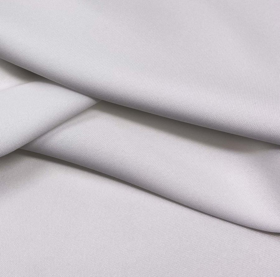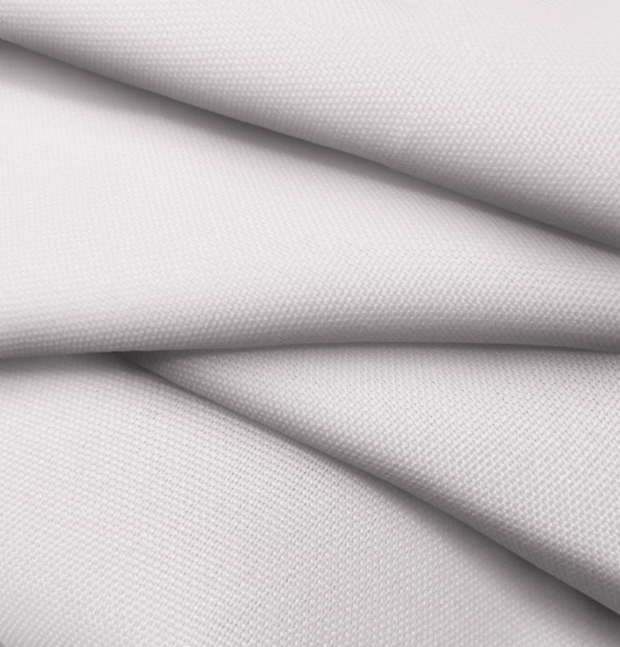 La tela base es el Tejido Hidrófugo Antibacteriano - Tromso, un tejido técnico compuesto por 100% POLIÉSTER, con un gramaje de 160 gr/m2 y un ancho de 150 cm. El color liso impreso es de un Blanco Perla, con un CMYK de 3 9 2 0, lo que se traduce en una mayor presencia del color Magenta en la impresión.