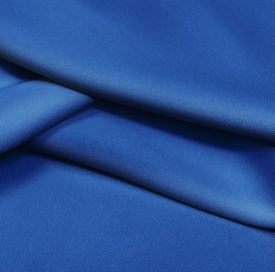 La tela base, Tejido Hidrófugo Antibacteriano - Tromso, es un tejido técnico compuesto al 100% de poliéster con un gramaje de 160 gr/m2 y un ancho de 150 cm. El color liso impreso sobre ella es un tono de azul llamado Ballena azul, con una mezcla de tinta Cyan del 100%, Magenta del 77%, Yellow del 14% y Black de tan solo el 2%. Este color secundario, inspirado en la tonalidad del océano, tiene un toque de profundidad y energía que lo hace ideal para diseños modernos y dinámicos. Se combina bien con azules marinos, grises nubes, rosa pastel y blanco.
