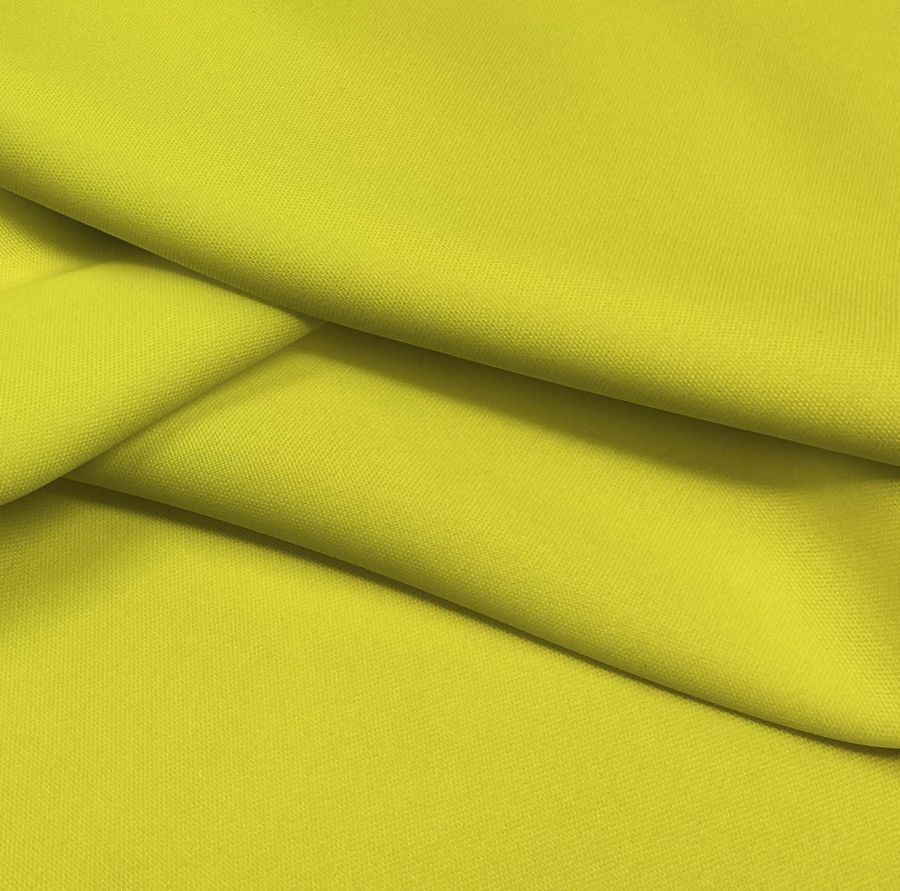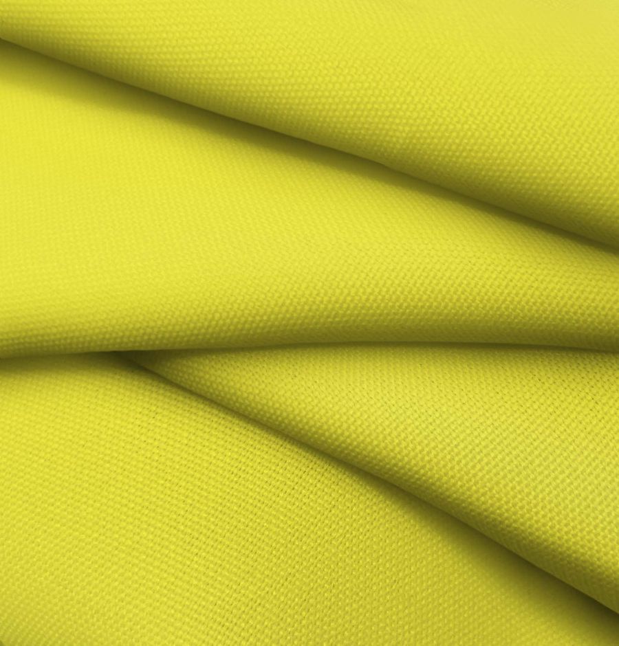 El tejido base de nuestra tela es el Tejido Hidrófugo Antibacteriano - Tromso, un tejido técnico de 100% poliéster con un gramaje de 160 gr/m2 y un ancho de 150 cm. En cuanto al color liso impreso, este presenta un vibrante Amarillo canario con un CMYK de 13 1 85 0. El color secundario de este amarillo intenso es una mezcla de verde y naranja, lo que permite mixearlo con otros tonos de amarillo, así como con colores neutros como grises o blancos.