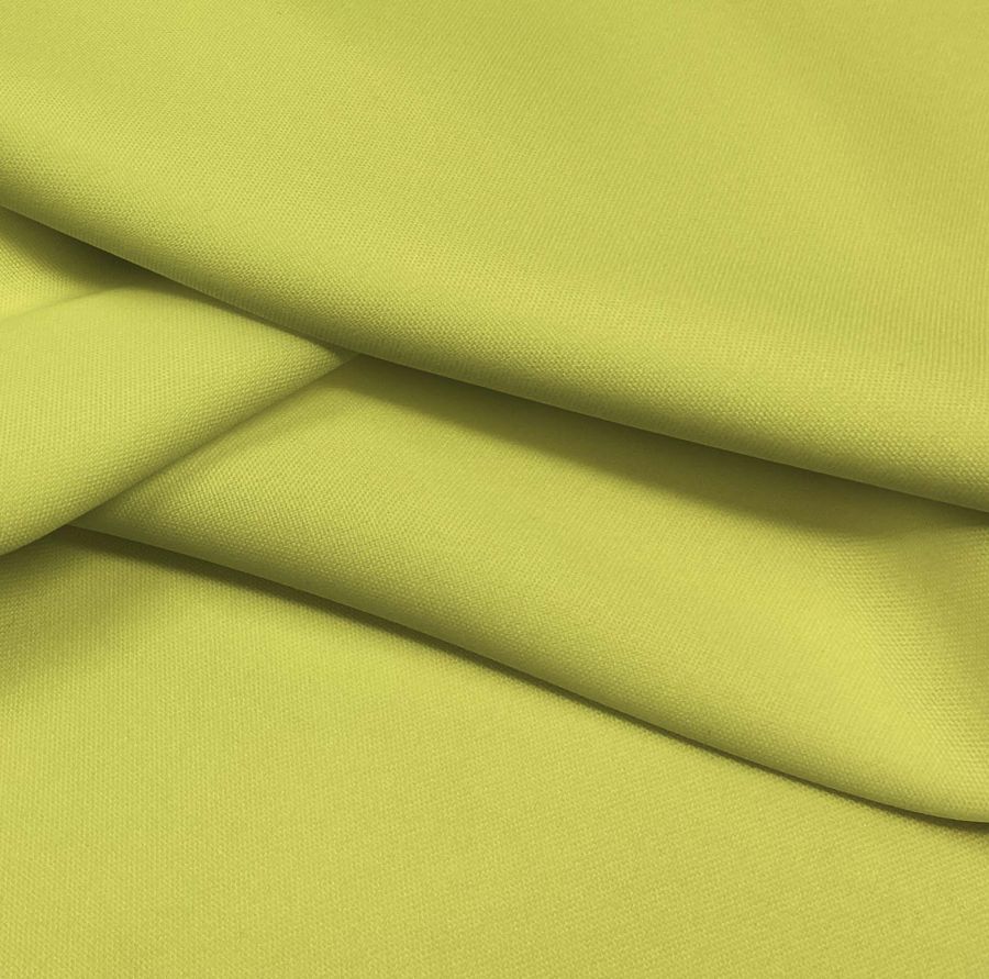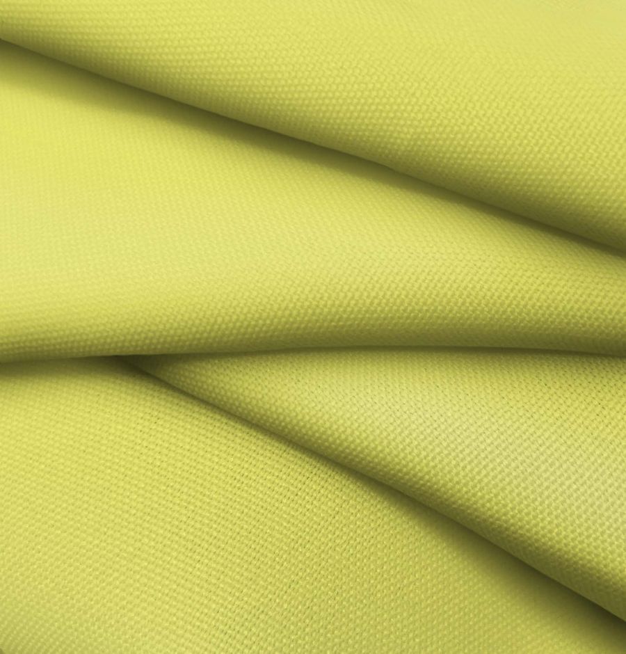 La tela base es el Tejido Hidrófugo Antibacteriano - Tromso, un tejido técnico compuesto por 100% poliéster y con un gramaje de 160 gr/m2 y un ancho de 150 cm. El color liso impreso es un tono amarillo plátano con un valor de 18 en tinta cyan, 2 en tinta magenta, 75 en tinta yellow y 0 en tinta black, lo que se traduce en un CMYK de 18 2 75 0.