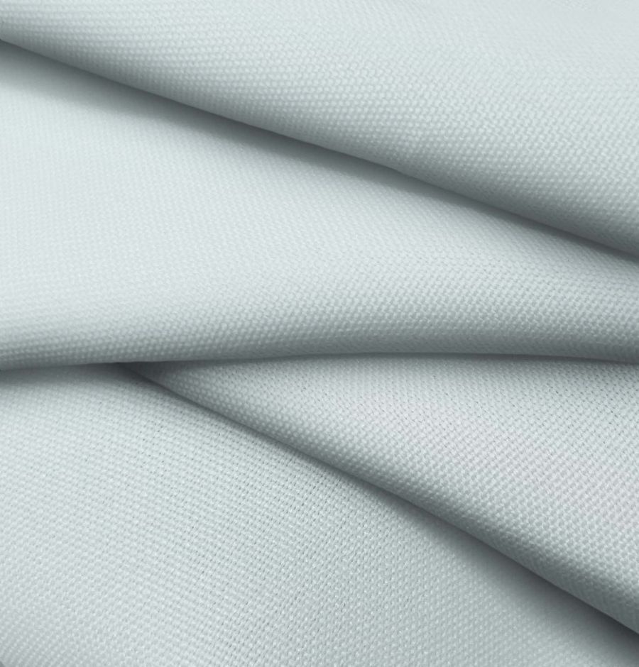 La tela base, Tejido Hidrófugo Antibacteriano - Tromso, es un tejido técnico de 100% poliéster con un gramaje de 160 gr/m2 y un ancho de 150 cm. El color liso impreso es de un hermoso azul PowderBlue, con un CMYK de 23 4 10 0. Este color se describe por su suavidad y frescura, transmitiendo una sensación de paz y tranquilidad. Se combina perfectamente con colores pálidos como el rosa o el lavanda para crear una atmosfera relajante y romántica. La tela base impresa con este color liso es solo a una sola cara por impresión digital textil.