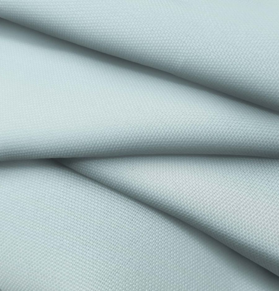 El color liso impreso que se muestra es PowderBlue, el cual es un tono azul intenso y brillante. La medición del CMYK del color es 32 5 13 0, compuesto principalmente de tintas cian, magenta y amarillo, sin tinta negra. Este tono PowderBlue combina muy bien con otros tonos de azul, verde y blanco. Cabe destacar que el tejido se imprime con el color liso a una sola cara por impresión digital textil, lo que significa que una cara tendrá un color uniforme, pero la otra cara tendrá un aspecto opuesto.