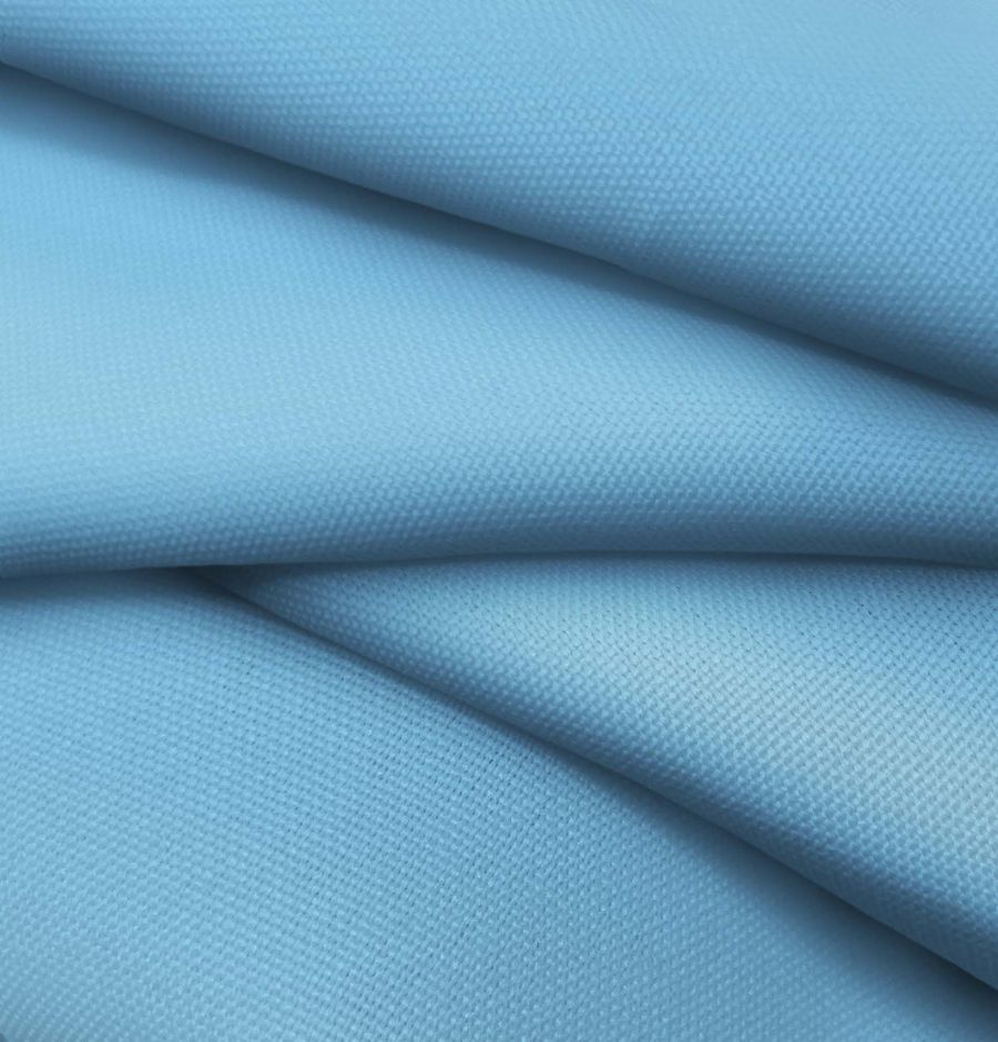 La tela base, Tejido Hidrófugo Antibacteriano - Tromso, es un tejido técnico de poliéster con un gramaje de 160 gr/m2 y un ancho de 150 cm. El color liso impreso en la tela es Azul seda, con una proporción de 60% de tinta Cyan, 20% de tinta Magenta, 1% de tinta Yellow y 0% de tinta Black, dando un tono azul claro y brillante. El azul seda es un color que representa la tranquilidad, la confianza y la serenidad. Este color combina especialmente bien con tonalidades de grises, blancos, amarillos y dorados.