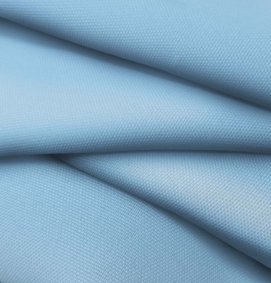 La tela base es el Tejido Hidrófugo Antibacteriano - Tromso, con un gramaje de 160 gr/m2, ancho de 150 cm y composición 100% poliéster. El color liso impreso es Azul Iceberg, reflejando un CMYK de 52 18 2 0, con una tonalidad fría pero vibrante. Este color secundario simboliza la frescura de un paisaje invernal y combina muy bien con tonos blancos, grises y azules oscuros.