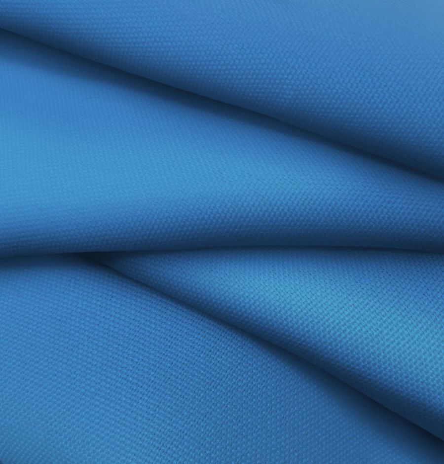 La tela base es el Tejido Hidrófugo Antibacteriano - Tromso, compuesta en un 100% por POLIÉSTER, con un gramaje de 160 gr/m2 y un ancho de 150 cm. Su color liso impreso es el Azul Windows, con un CMYK de 83 54 5 0. Este color se define por un tono azul eléctrico vibrante, lo que representa la claridad, la frescura y la profundidad del agua cristalina del mar. En combinación con el blanco, resalta la pureza del mismo, mientras que con el naranja y el amarillo, crea un efecto de contraste radiante.