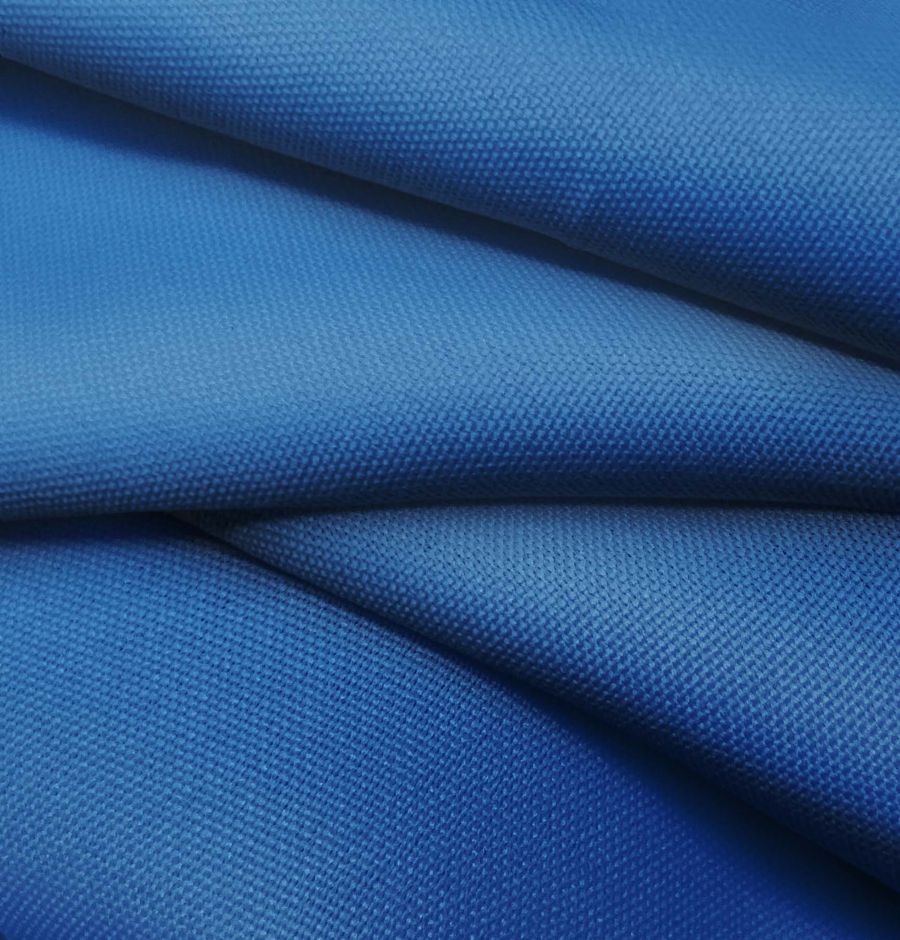 La tela base, Tejido Hidrófugo Antibacteriano - Tromso, está compuesta por un 100% de poliéster con un gramaje de 160 gr/m2 y un ancho de 150 cm. El color liso impreso es un azul arándano con un CMYK de 100 77 13 2, lo que le da un toque vibrante y fresco al tejido. Este color secundario combina bien con otros azules y verdes, y aporta un contraste interesante con tonos terracota y mostaza.