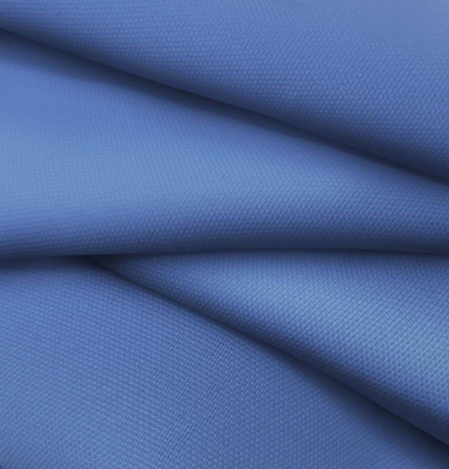 La tela base es el Tejido Hidrófugo Antibacteriano - Tromso, con una composición al 100% de POLIÉSTER y un gramaje de 160 gr/m2. El color liso impreso es de tonalidades Azul/Azul celeste, con un último CMYK de 77 58 7 0. Este color secundario posee una simbología vinculada a la confianza, la tranquilidad y la armonía. Es un color que, dentro del lenguaje de la moda, se relaciona con la creatividad y la energía vital, y combina especialmente bien con otros colores como el blanco y el rosa pastel. Cabe destacar que el tejido está impreso con el color liso a una sola cara por impresión digital textil de alta calidad.
