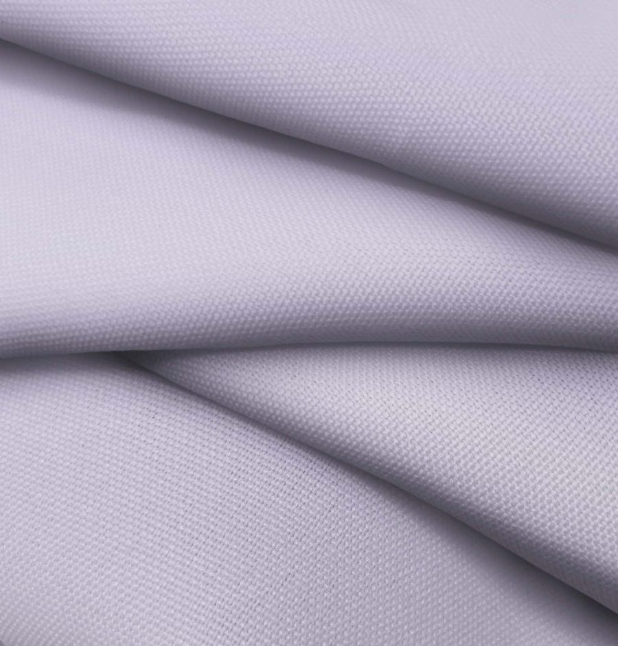 La tela base es el Tejido Hidrófugo Antibacteriano - Tromso, un tejido técnico 100% poliéster de 160 gr/m2 y ancho de 150 cm. El color liso impreso es un Morado Lila pálido, con una mezcla de tintas CMYK 29 28 4 0. Este color primaveral y suave combina perfectamente con tonos verdes, rosas y amarillos.