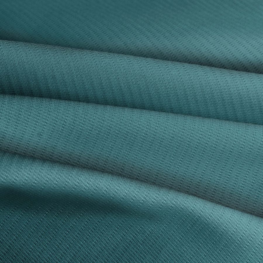 El Tejido Técnico Transpirable - Fresh se caracteriza por ser un tejido técnico con una composición del 100% de poliéster con un gramaje de 135 gr/m2 y un ancho de tela de 150 cm. Su color liso es impresionante en un tono de Azul-Verde Azulado Medio que se obtiene mediante la tecnología de sublimación con los siguientes valores en el CMYK: 80 40 47 29. El color es complementado con otras gamas de colores como verde, azul y morado, creando un look fresco y moderno. Es importante destacar que este tejido está impreso con el color liso a una sola cara por impresión digital textil, lo que significa que no es un tejido tintado sino impreso por una sola cara.