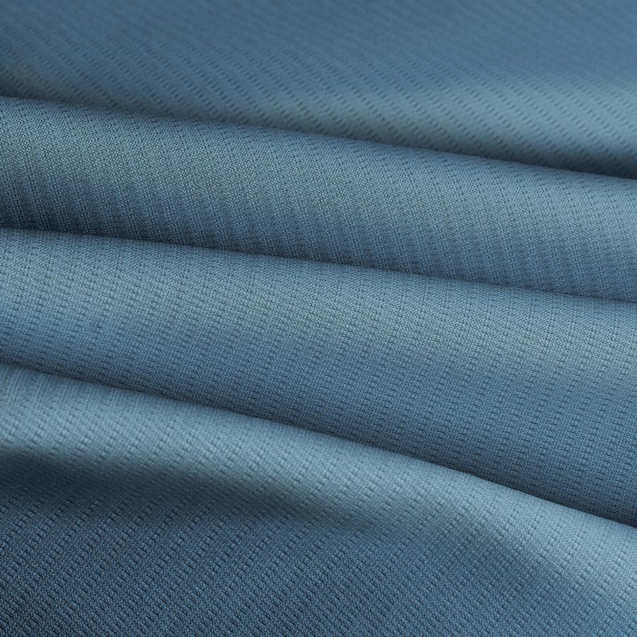 La tela base es el Tejido Técnico Transpirable - Fresh, una tela de composición 100% poliéster, con un gramaje de 135 gr/m2 y un ancho de 150 cm. La tela es de color blanco, pero se puede imprimir con diferentes colores. En este caso, el color liso impreso es Azul Koi, con un CMYK de 63 32 18 3.