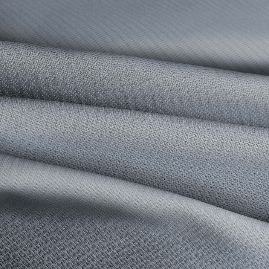 La tela base de este tejido es un tejido técnico transpirable llamado "Fresh", compuesto por 100% poliéster, con un gramaje de 135 gr/m2 y un ancho de 150 cm. El color liso impreso en esta tela es un gris-azulado, con un CMYK de 36 21 17 1, lo que indica que es un color frío y suave. Combina especialmente bien con colores cálidos como los ocres o los rojos, pero también puede ser complementado con tonos neutros como el blanco o el beige.
