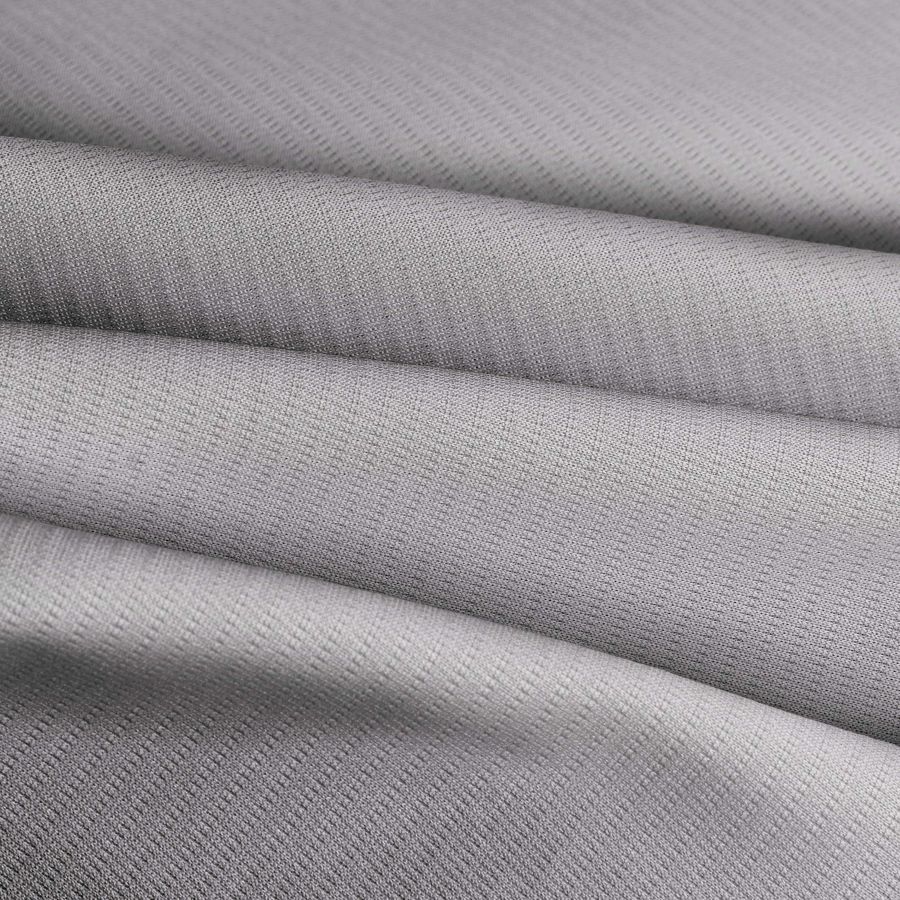 El color liso impreso es un Gris Platino, que se consigue mediante la tecnología de impresión por sublimación. La combinación en el CMYK es 9 9 6 0, con un toque de cian y magenta, un poco más de amarillo y ninguna cantidad de negro. Este color es transpirable y elástico, con una textura muy agradable al tacto. Es ideal para ser utilizado en prendas deportivas como camisetas o pantalones. Combina muy bien con tonalidades negras, blancas y rojas.