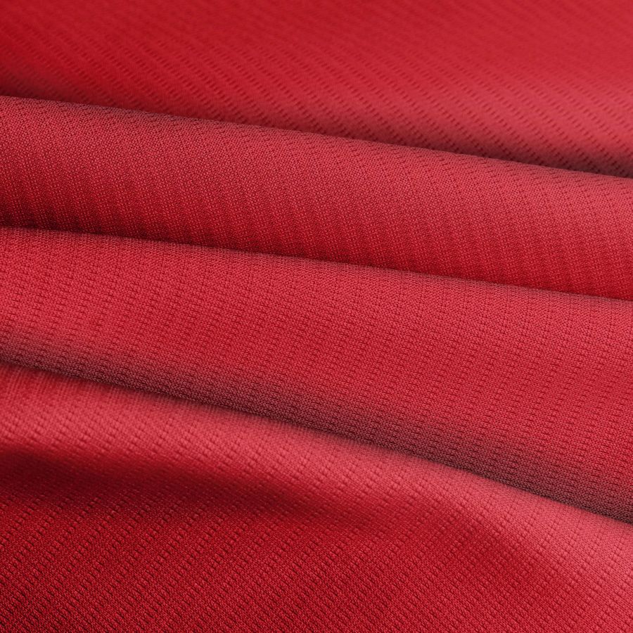 Esta tela base es el Tejido Técnico Transpirable - Fresh, con una composición de 100% poliéster y un gramaje de 135 gr/m², con un ancho de 150cm. El color liso impreso es un vibrante Rojo Pimiento Picante, que combina las siguientes tintas: Cyan 17, Magenta 100, Yellow 89, Black 7 (CMYK: 17 100 89 7).