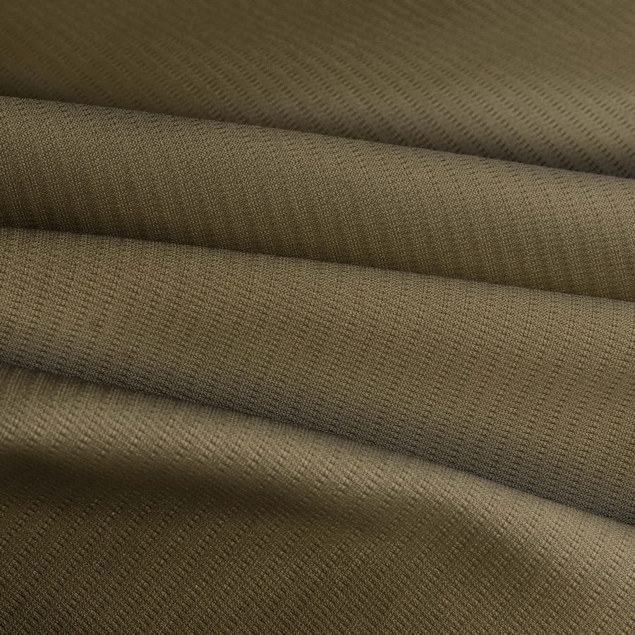 La tela base es el Tejido Técnico Transpirable - Fresh, de 100% poliéster, con un gramaje de 135 gr/m2, un ancho de 150 cm y un acabado transpirable. El color liso impreso en la tela es Marrón Moca, con un CMYK de 52 53 80 54. El color Marrón Moca tiene una naturaleza cálida y terrosa, lo que lo hace ideal para combinarlo con tonalidades similares como el beige o el marrón oscuro, y tonos más fríos como el azul oscuro.