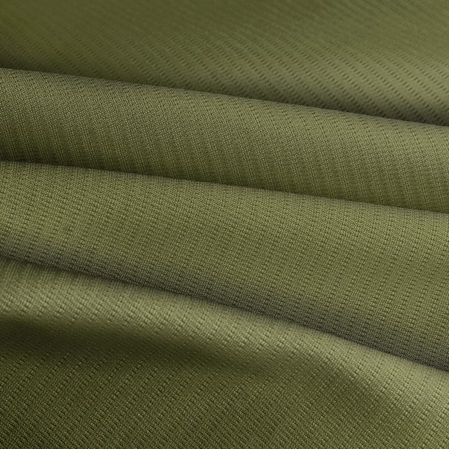 La tela base es el Tejido Técnico Transpirable - Fresh de 100% POLIÉSTER con un gramaje de 135 gr/m2 y un ancho de 150 cm. El color liso impreso es un Tierra verde con los siguientes datos CMYK: 61 45 88 41. Este color transmite un fuerte mensaje de conexión con la naturaleza, paz y tranquilidad. Combina maravillosamente con tonalidades ocres y marrones, pero también con tonos azules y grises para contrastar.
