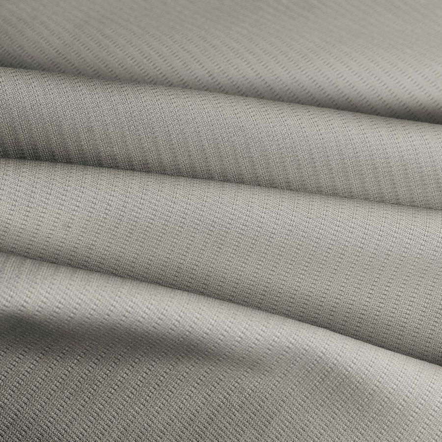 La tela base de esta referencia es el Tejido Técnico Transpirable - Fresh, compuesta por 100% poliéster, con un gramaje de 135 gr/m2, un ancho de 150 cm y cuidados especiales, como lavado máximo a 60ºC y sin blanqueador ni lavado en seco. El color liso impreso viene en tonos crudo y ceniza blanca, con un valor de 16 en cian, 9 en magenta, 23 en amarillo y 0 en negro en el modelo CMYK.