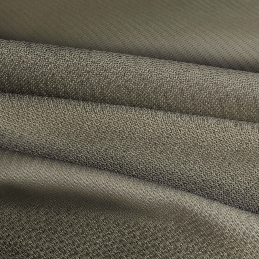 La tela base es el Tejido Técnico Transpirable - Fresh, compuesta al 100% de poliéster, con un gramaje de 135 gr/m2 y un ancho de 150 cm. El color liso impreso es un tono Marrón Moca, con las siguientes especificaciones: CMYK de 53 46 60 41, con una mezcla de tintas Cyan, Magenta, Yellow y Black.