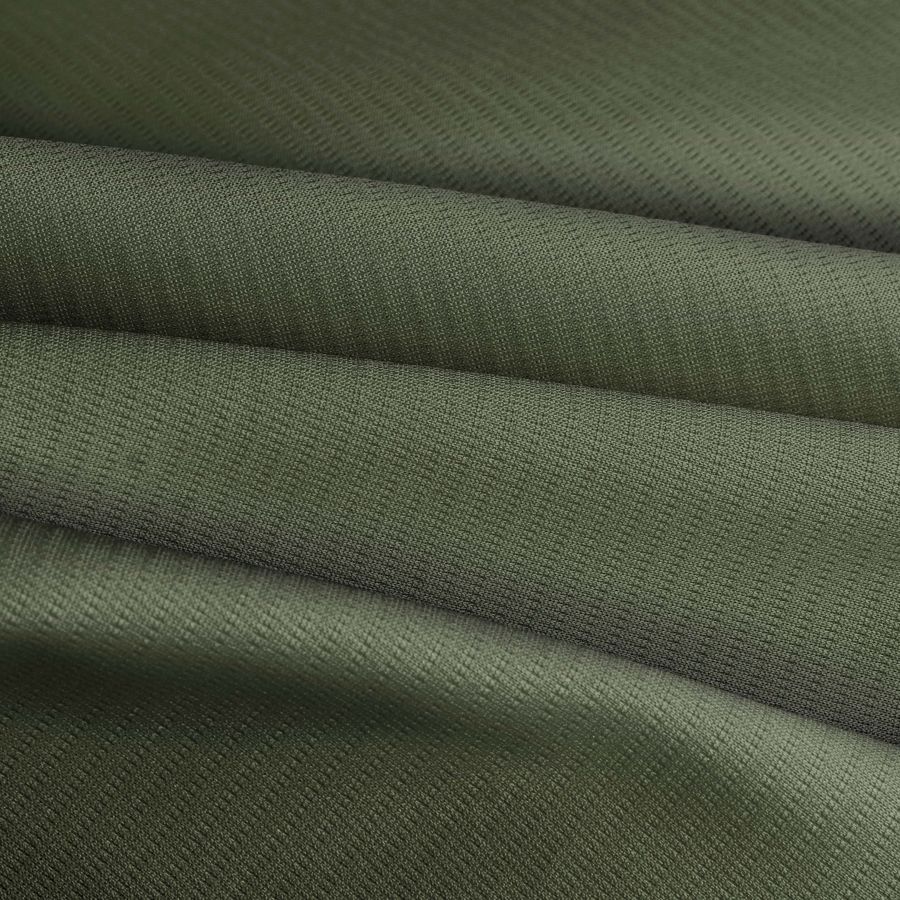 La tela base de este tejido es el Tejido Técnico Transpirable - Fresh, con una composición del 100% de poliéster y un gramaje de 135 gr/m2, con un ancho de la tela de 150 cm. El color liso impreso es un verde bosque oscuro con una combinación de tinta Cyan de 66, Magenta de 48, Yellow de 74 y Black de 50 en CMYK.