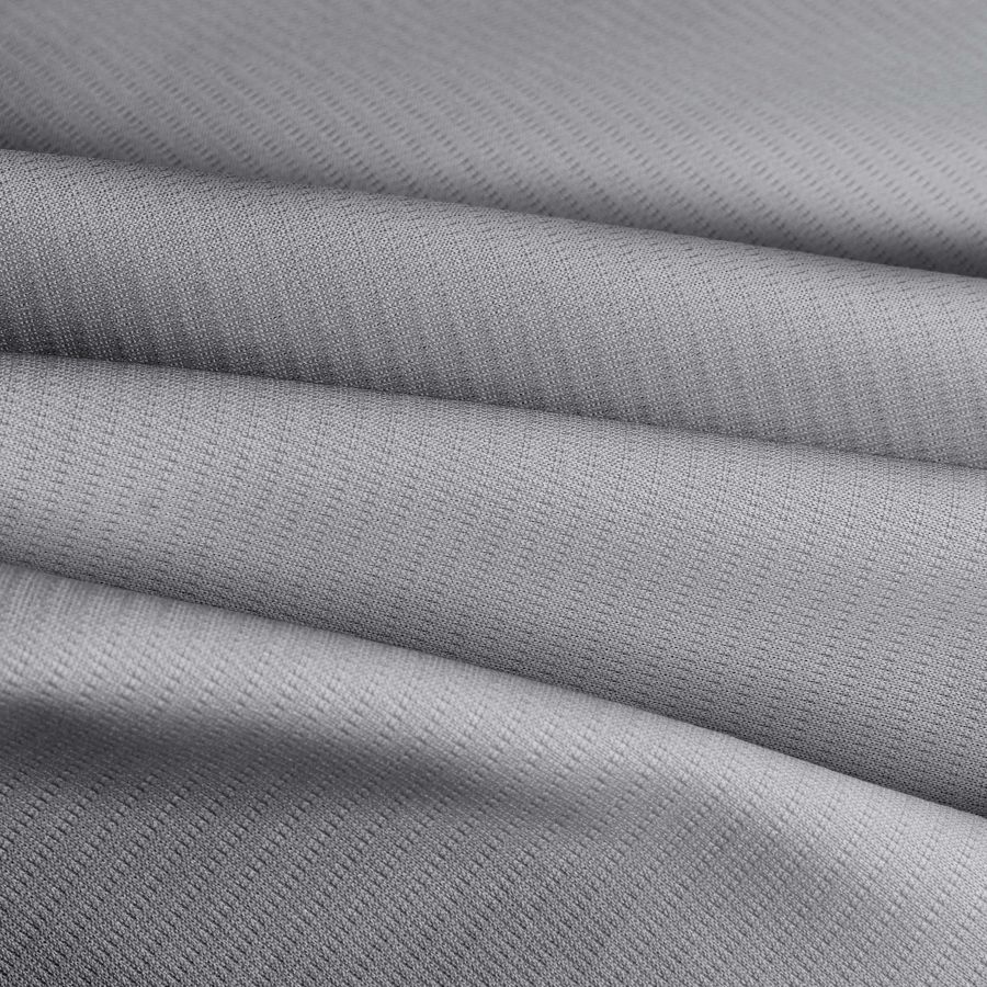 La tela base, Tejido Técnico Transpirable - Fresh de 100% poliéster, tiene un gramaje de 135 gr/m2 y un ancho de 150 cm. El color liso impreso es una combinación de gris y plata, con un CMYK de 22, 15, 13, 0, lo que le da un tono sofisticado y elegante. El color secundario, plateado, es un color metálico que ha sido popular en la ropa de alta costura durante mucho tiempo. Combina muy bien con otros colores como el negro, el blanco, el dorado y el rojo oscuro.