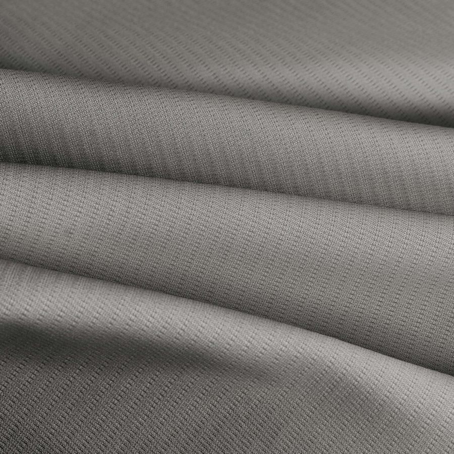 La tela base del tejido técnico transpirable - Fresh es de 100% poliéster y tiene un gramaje de 135 gr/m2. Su ancho es de 150 cm y presenta un acabado transpirable y una textura elástica y suave al tacto. El color liso impreso en este tejido es una combinación de gris y verde salvia con los valores de tinta cian 36, magenta 28, amarillo 33 y negro 8, reflejando un tono suave y relajante. Este color secundario, el verde salvia, denota tranquilidad, frescor y relajación, y combina especialmente bien con tonalidades marrones, ocres y naranjas.