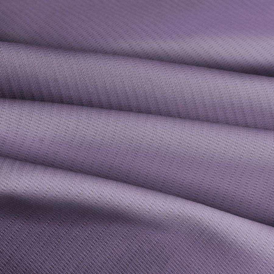 La tela base en sí misma tiene una textura elástica propia de los tejidos técnicos, lo que garantiza una gran comodidad y flexibilidad al moverse. Es transpirable, lo cual es especialmente importante en prendas deportivas ya que ayuda al cuerpo a mantenerse fresco y seco durante el entrenamiento. En cuanto al color liso impreso, éste es un precioso morado lavanda púrpura que se logra mediante la combinación de 39% de tinta cyan, 47% de tinta magenta y 5% de tinta amarilla. Dicho color es bastante versátil y combina especialmente bien con tonos tierra como el beige y el marrón, así como con tonos pastel como el amarillo y el rosa.