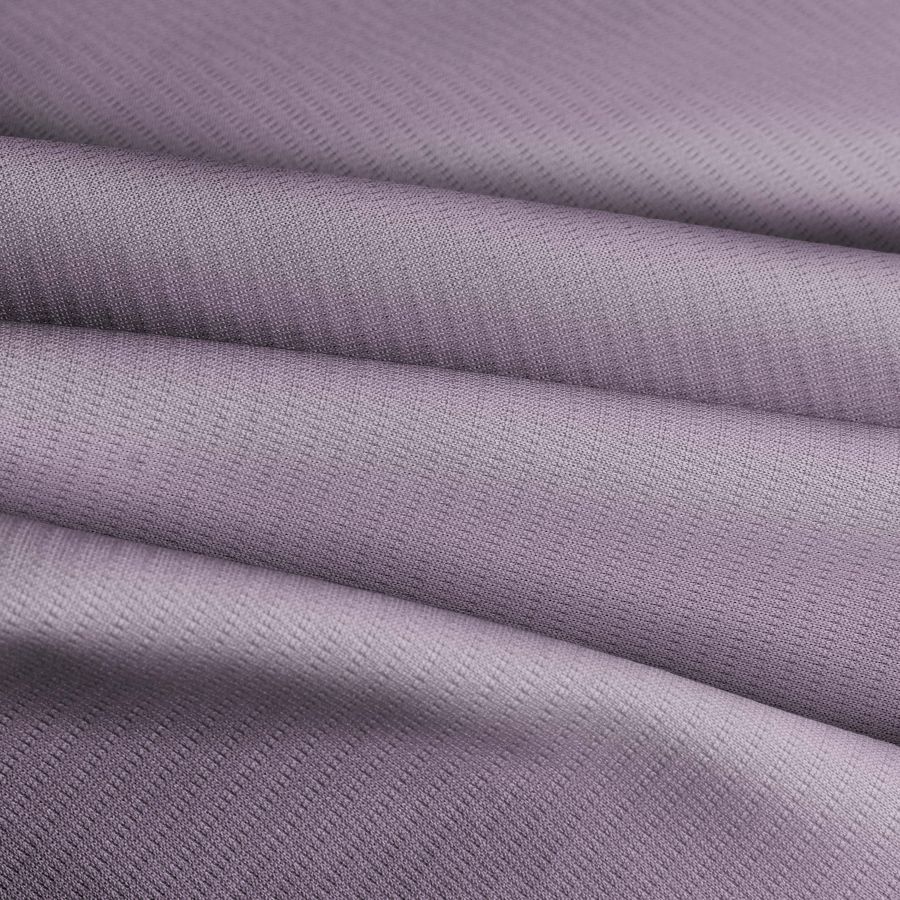 La tela base de este tejido es el Tejido Técnico Transpirable - Fresh, elaborado con 100% poliéster, de gramaje de 135 gr/m2 y ancho de 150cm, ideal para la confección de prendas transpirables como camisetas deportivas. El color liso impreso presenta una tonalidad morada-lila, con una mezcla de tinta Cyan, Magenta y Yellow en un CMYK de 21 34 4 0, de tacto elástico y transpirable. El color secundario ofrece una combinación armónica de azul y rojo que transmite creatividad, originalidad e imaginación, permitiendo hacer combinaciones con colores como el blanco, gris y negro para resaltar la intensidad del color liso.