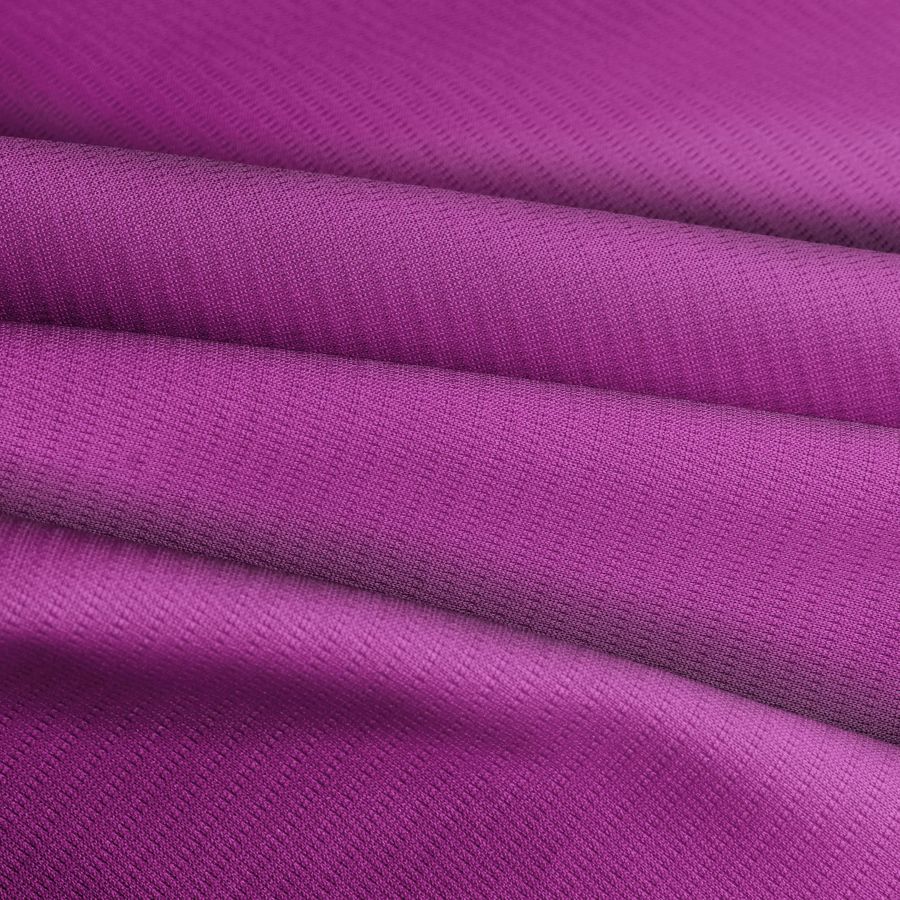 La tela base es el Tejido Técnico Transpirable - Fresh, compuesto por 100% poliéster con un gramaje de 135 gr/m2 y un ancho de 150 cm. Su color liso impreso es de tonalidad morado-púrpura con un CMYK de 46 95 1 0, lo que le confiere una elegancia y sofisticación moderna. Se trata de un color secundario que simboliza la creatividad, la espiritualidad y la imaginación, combinando a la perfección con tonos neutros como el blanco o el negro, así como con tonos análogos como el rosa pálido o el azul claro.
