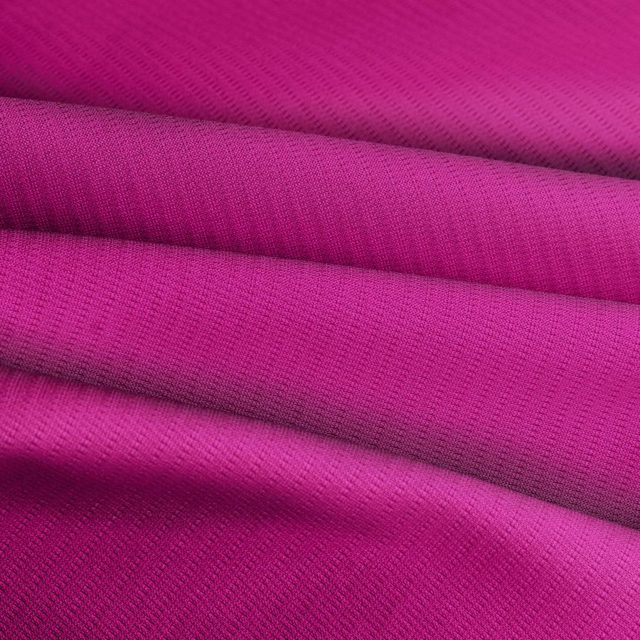 Las características de la tela incluyen su acabado transpirable y su textura elástica, lo que la hace muy cómoda para llevar en actividades deportivas intensas. Además, el rosa clavel oscuro tiene un aspecto muy moderno y juvenil, lo que la hace perfecta para prendas de moda y deporte.