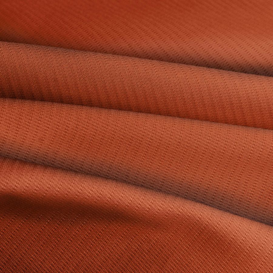 El tejido técnico transpirable - Fresh, de composición 100% poliéster, presenta un gramaje de 135 gr/m2 y un ancho de 150 cm. El color liso impreso es rojo oscuro, cuyo CMYK es 25 85 100 21. Es un color intenso y profundo, que representa la pasión y el poder. Combina muy bien con matices dorados, plateados y beige. Además, funciona con colores más claros como el orquídea, el rosa y el azul cielo.