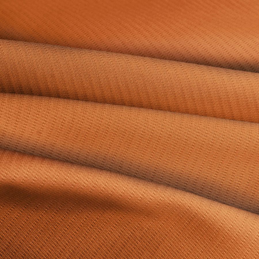 La tela base es un Tejido Técnico Transpirable - Fresh, 100% poliéster, con un gramaje de 135 gr/m2 y un ancho de 150 cm. El color liso impreso es un naranja intenso con matices de zorro rojo, el cual está compuesto por una mezcla de cian (16), magenta (69), yellow (92) y negro (5) en el CMYK. Este color secundario simboliza la vitalidad y la emoción, y se combina bien con colores como el blanco, el turquesa y el gris para un efecto fresco y optimista.