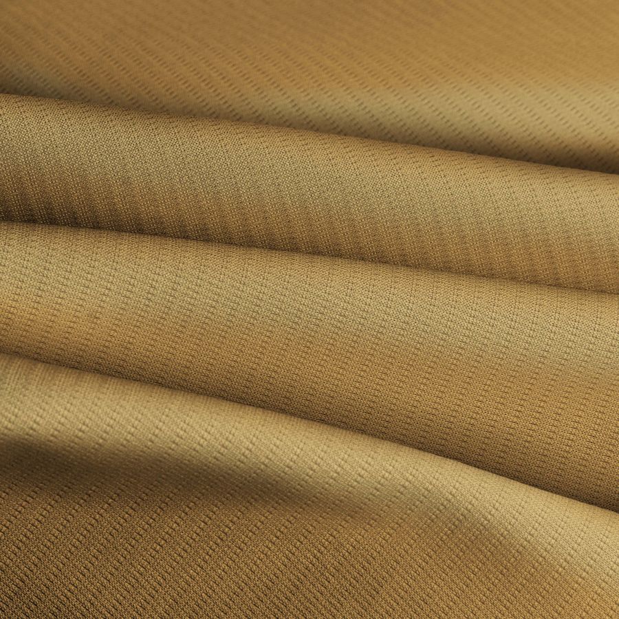 La tela base es el Tejido Técnico Transpirable Fresh, compuesta al 100% de poliéster, con un gramaje de 135 gr/m2 y un ancho de 150 cm. El color liso impreso es de un vibrante Naranja Mango Naranja, con un CMYK de 12 37 68 2. Este color secundario simboliza la energía positiva y creatividad, y combina perfectamente con tonos tierra, azules y verdes.