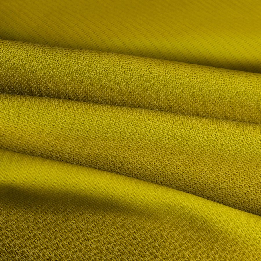 La tela base es el Tejido Técnico Transpirable Fresh, compuesta por 100% poliéster, con un gramaje de 135g/m2 y un ancho de 150cm. El color liso impreso es un amarillo oro brillante, obtenido a través de una tinta CMYK con los siguientes porcentajes: Cyan 15, Magenta 25, Yellow 97 y Black 3. Este color es simbólico y transmite alegría, optimismo y energía.
