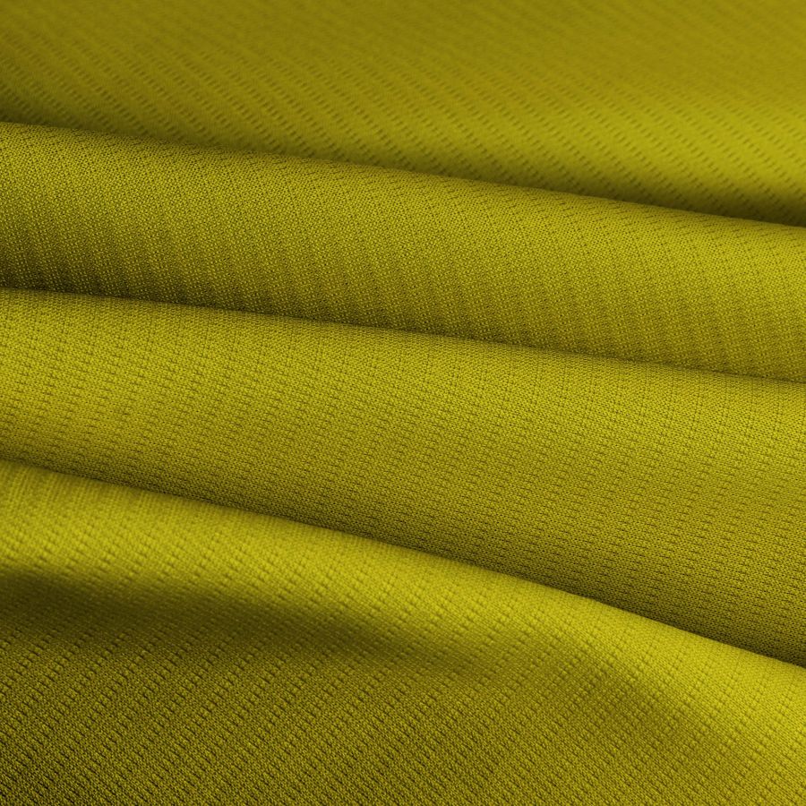 La tela base es el Tejido Técnico Transpirable - Fresh, compuesto de 100% POLIÉSTER con un gramaje de 135 gr/m2 y un ancho de 150 cm. El color liso impreso es verde olivo, con un CMYK de 26 22 98 5. Este tono transmite tranquilidad con un sentido de serenidad, y es perfecto para complementar con otros tonos terrosos como marrones y cremas.