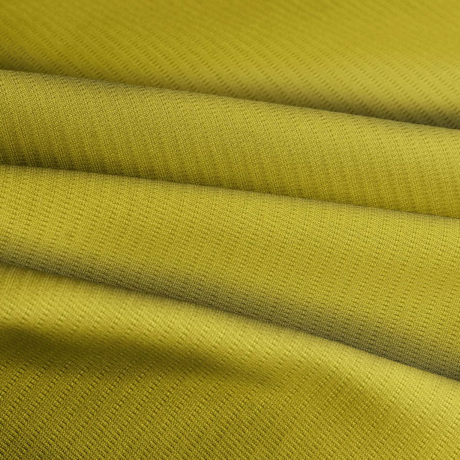 La tela base es el tejido técnico transpirable Fresh, compuesta por 100% poliéster en un gramaje de 135gr/m2. El color liso impreso es verde olivo, cuyos valores de tinta por cada color son: cyan 32, magenta 28, yellow 99 y black 11 con un CMYK de 32 28 99 11. Este color simboliza la naturaleza, la calma y la energía renovable. Combina muy bien con colores como el mostaza, el marrón, el beige y el blanco, y es perfecto para la ropa deportiva y accesorios.