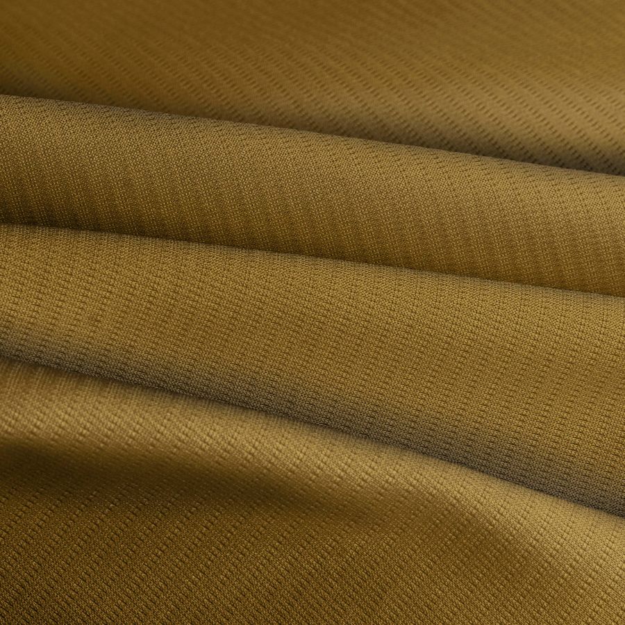 La tela base es el Tejido Técnico Transpirable - Fresh, un tejido técnico compuesto por 100% poliéster de gramaje de 135 gr/m2 y ancho de 150 cm. Su color liso impreso es marrón oscuro con un CMYK de 38 55 100 44 que refleja su contenido de tinta de cyan, magenta, yellow y black. Este color primario simboliza la seguridad, estabilidad y confianza, mientras que el marrón oscuro secundario proporciona una sensación de calidez, elegancia y sofisticación. Se combina bien con colores pasteles, dorados y plateados.