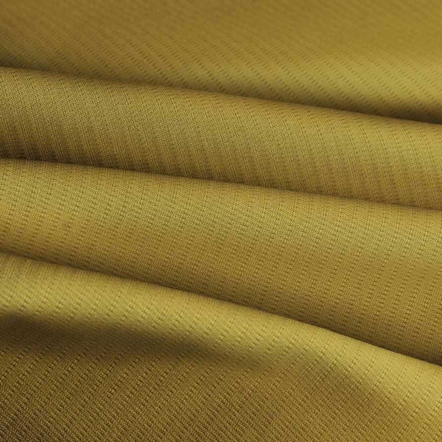 La tela base es el tejido técnico transpirable Fresh, compuesta al 100% de poliéster, con un gramaje de 135 gr/m2 y un ancho de 150 cm. En cuanto al color liso impreso, encontramos una combinación de amarillo y marrón galleta con el siguiente contenido de CMYK: 19 34 80 7. Este color secundario irradia naturalidad, confort y calidez, creado para complementar y combinar con una infinidad de tonalidades.