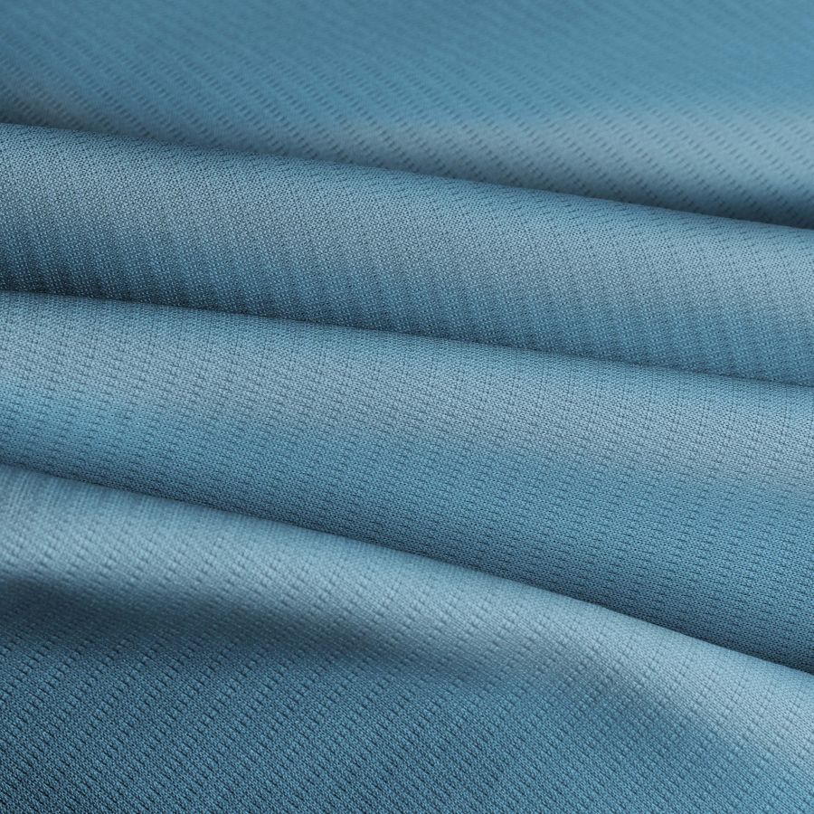 La tela base es el Tejido Técnico Transpirable - Fresh, compuesta por 100% poliéster, con un gramaje de 135 gr/m2 y un ancho de 150 cm. El color liso impreso es el Azul Iceberg, con una combinación de tintas CMYK de 56 13 6 0. El color Azul Iceberg se describe como un tono suave y refrescante, evocando la tranquilidad de los mares del norte. Combina bien con algunos tonos de turquesa, blanco y gris.