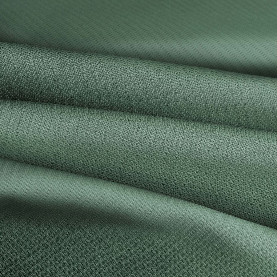 La tela base es el Tejido Técnico Transpirable - Fresh, compuesta por 100% poliéster, con un gramaje de 135 gr/m2 y un ancho de 150 cm. Su color liso impreso es un verde mar opaco, indicado por un CMYK de 60 27 55 10. Este color simboliza la tranquilidad y la armonía con la naturaleza. Combina especialmente bien con tonos amarillos y grises claros, creando un ambiente fresco y natural. Cabe destacar que la tela está impresa con el color liso a una sola cara por impresión digital textil.