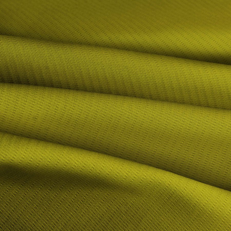 El tejido base es el Tejido Técnico Transpirable - Fresh, 100% poliéster con un gramaje de 135 gr/m2 y ancho de tela de 150 cm. El color liso impreso es verde oliva con los atributos: cyan 38, magenta 29, yellow 100, black 12 y su CMYK es 38 29 100 12. Este color transmite una sensación de frescura y naturalidad, recordando a la naturaleza y a la serenidad. Combina perfectamente con otros colores tierra como el marrón o el beige y también con colores intensos como el amarillo o el naranja.