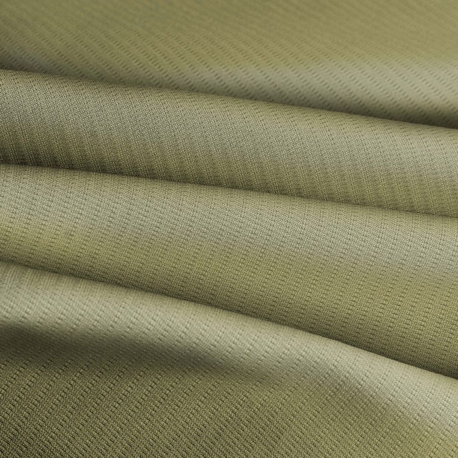 La tela base del tejido Fresh es un tejido técnico transpirable compuesto al 100% de poliéster, con un gramaje de 135 gr/m2 y una anchura de 150 cm. El color liso impreso en el tejido es verde arena, cuyo CMYK es 29 19 57 4, lo que significa que es un color con una mezcla de cian, magenta, amarillo y negro que se utiliza para reflejar la sensación de aire fresco y natural, evocando la naturaleza, el mar y la playa. El color verde arena es un color que simboliza la estabilidad, la confianza y la seguridad y se puede combinar con colores como blancos, pasteles, azules, marrones y amarillos claros.