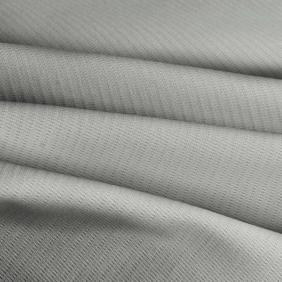 La tela base, Tejido Técnico Transpirable - Fresh, es un tejido 100% poliéster con un gramaje de 135 gr/m2 y un ancho de 150 cm. El color liso impreso en este tejido es Gris Platino, con los valores CMYK de 12 5 12 0, lo que indica una tonalidad suave y brillante que combina a la perfección con otros colores neutros como el blanco y el negro, y con tonalidades frías como el azul y el verde.