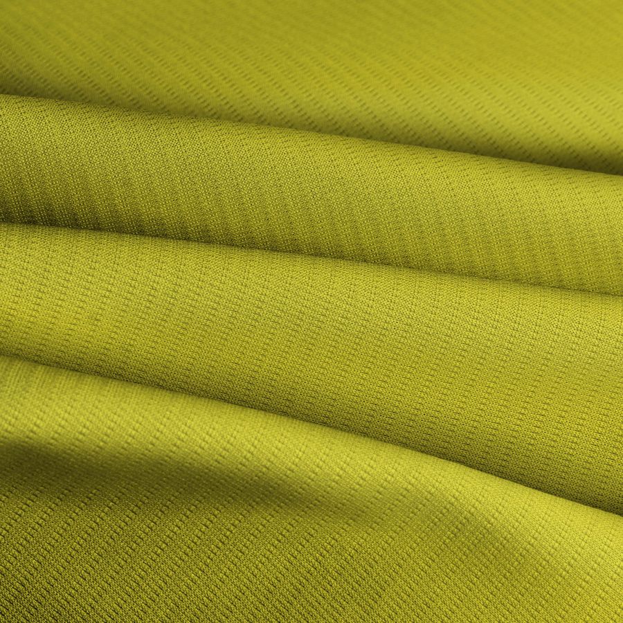 La tela base, Tejido Técnico Transpirable - Fresh, está compuesta de 100% poliéster y tiene un gramaje de 135 gr/m2. Su ancho es de 150 cm y dispone de una tecnología de impresión por sublimación. El color liso impreso en la tela es un Amarillo canario con una intensidad de tinta de Cyan: 13, Magenta: 1, Yellow: 85 y Black: 0, con un CMYK de 13 1 85 0.
